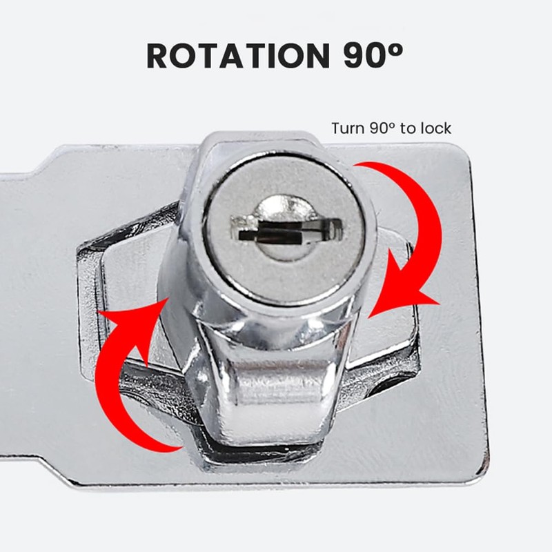 【PACKAGE CONTENT】You will receive 2pcs x 2.5 inch door lock hasps with 2 keys and 6 screws per lock (12 screws total). 2 packs of door lock hasps with keys are enough for your daily use. The bright silver color can match most styles of furniture.