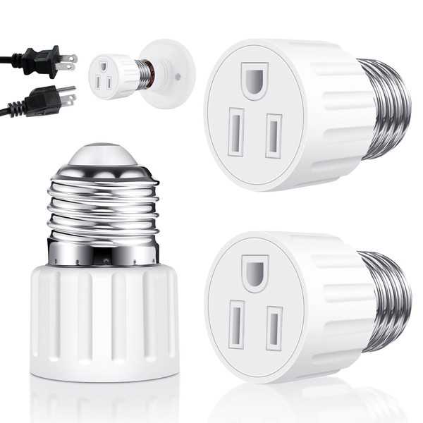 (2 Packs) 3 Prong Light Socket to Plug Adapter, E26 E27 Light Socket Outlet A...