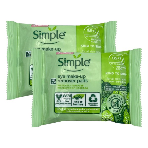 - 2 PACKS =60 Pads of Simple Kind to Eyes Eye Make Up Remover Pads by Simple