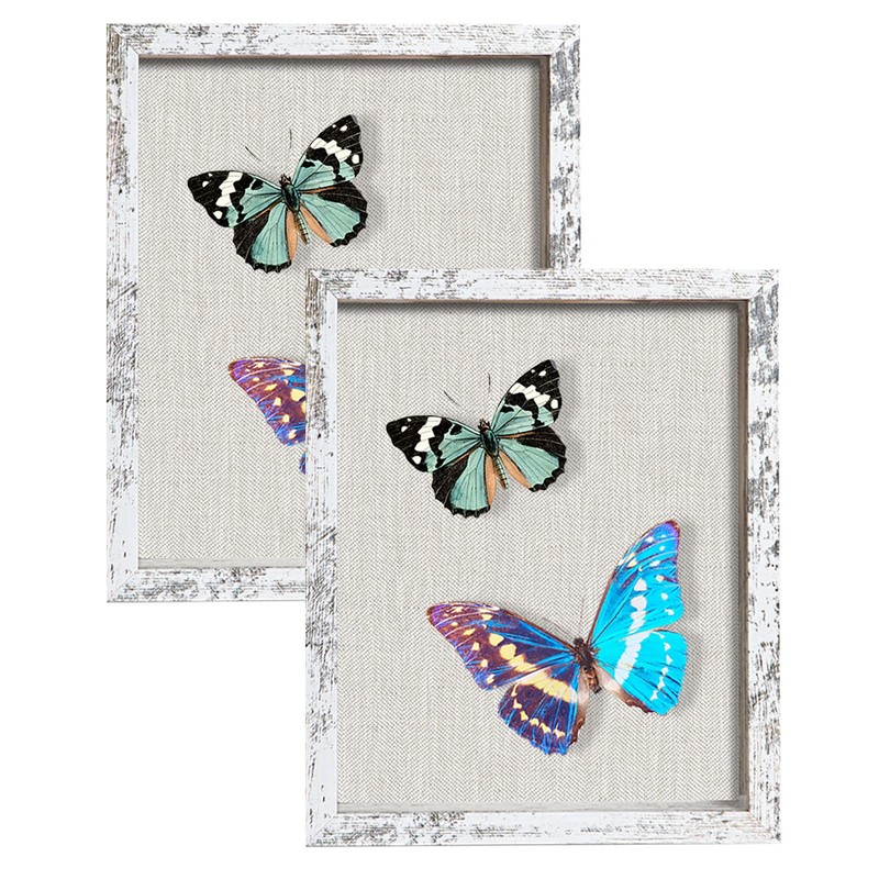 2 Packs 8x10 Shadow Box Frame with Linen Back - Sturdy Rustic Memory Display Case of Flower, Pictures, Medals and More, Distressed White