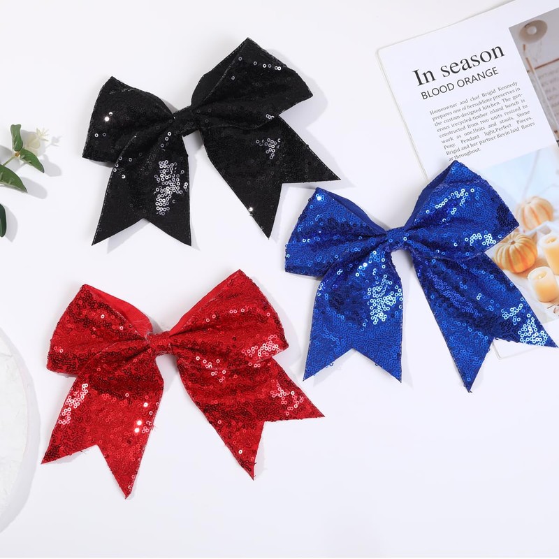 - Stretchy and Stable Design: Crafted from a 3-inch wide sequin ribbon, our cheer hair bows boast sturdy alligator clips. This ensures a secure hold for your hair, keeping it firmly in place throughout the day.