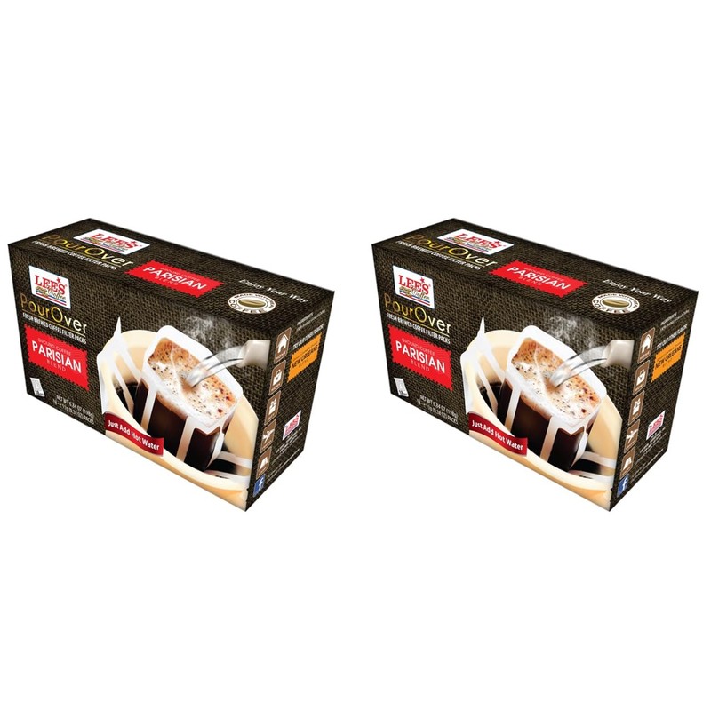 2 Packs - Lee's Coffee Pourover Fresh Ground Parisian Filter Packs - 18 Bags per Box