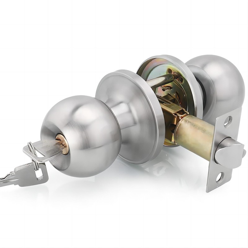 - Qrity Entrance (Key Locking) Door Knob in Satin Stainless Steel.