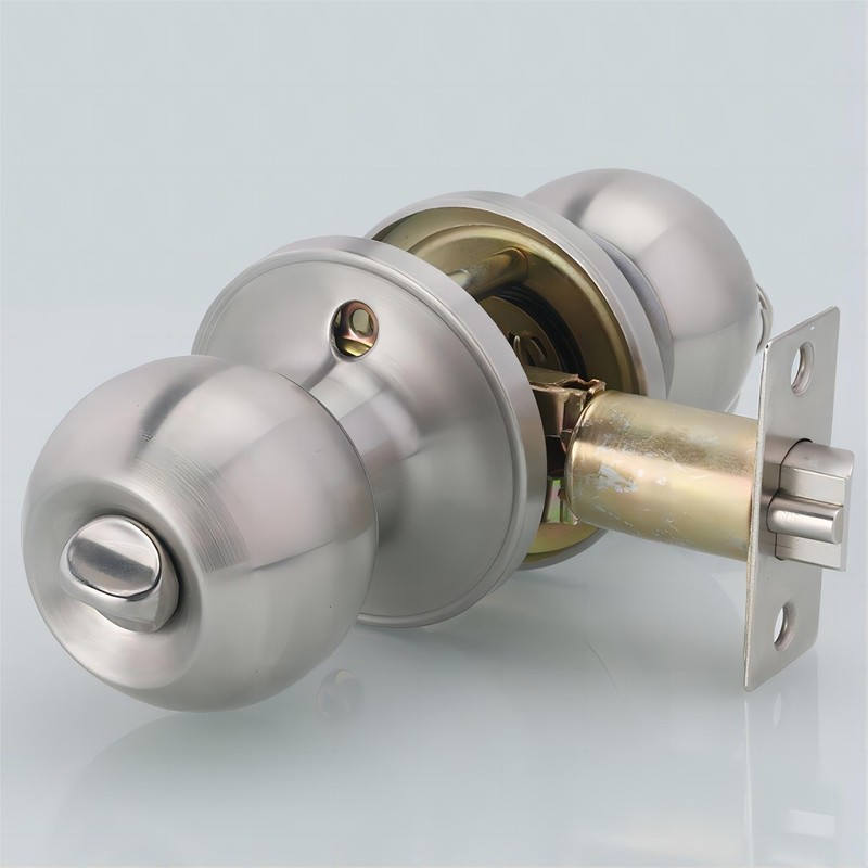- Qrity Entrance (Key Locking) Door Knob in Satin Stainless Steel.