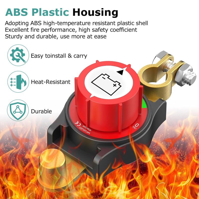 - Safe and Durable Materials: Constructed from high-quality ABS flame-retardant plastic plastic and copper connectors, this rv battery disconnect switch ensures long-term durability and reliable performance