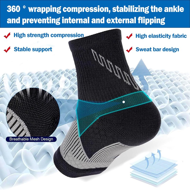 【Relieve Pressure】The ankle socks are anatomically shaped and will not slip during exercise. 20-30mmHg tight, effectively preventing sprains. They wrap tightly around the ankle, and the strong pressure can reduce ankle pressure and reduce ankle bone load, providing stronger protection for your extreme exercise.