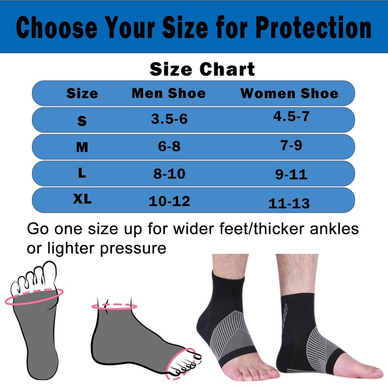 - 【Ankle Support】Ankle compression sleeve applies different pressures on the foot to keep the foot at the right angle and reduces the risk of sports injuries. Our open-toe designs that you can wear alone or under your socks. This design also enhances the flexibility of the toe, and you can practice toe grabbing exercises whether you are standing or sitting.