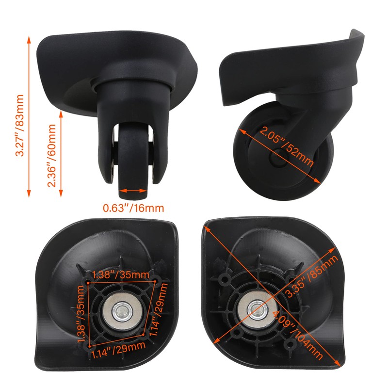 2 Pair Replacement Wheels for Luggage 360 Swivel Dual Suitcase Casters Roller Black (W187)