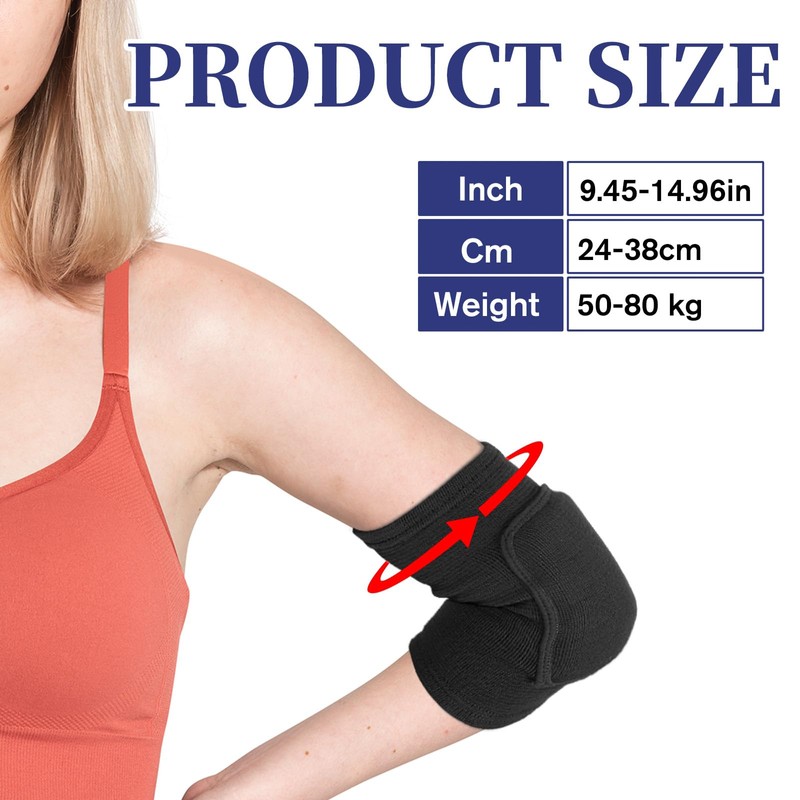 - ELASTICITY DESIGN: The elbow pads length 22 cm/8.66 in, narrow side width 10.5 cm/4.13 in, wide side width 12 cm/4.72 in. The sport elbow pads are elasticwith a certain degree of extensibility, not too tight or too loose, the multifunctional tennis elbow strap protects joints. Please pay attention to the product size before purchasing!