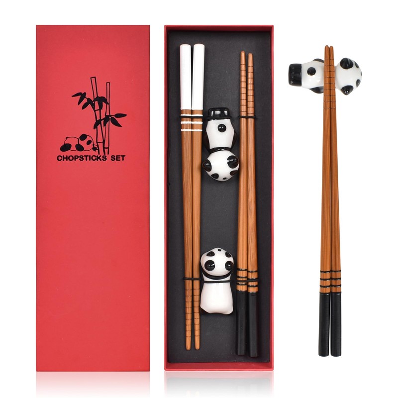 - ❤Package includes: This beautifully designed set includes 2 pairs of Wooden Chopsticks and 2 adorable panda chopstick rests, neatly packed in a gorgeous gift box. It's the perfect gift for friends, family, or loved ones who appreciate Chinese cuisine.