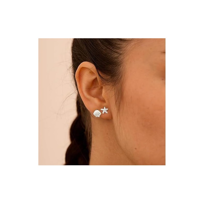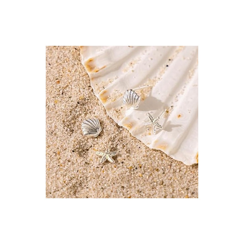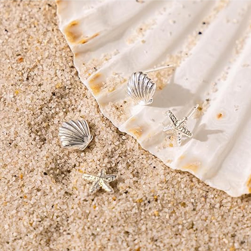 - Beach Jewelry:This elegant 2-pair earring set features one pair of starfish studs and one pair of seashell studs – perfect for ocean lovers and summer vibes.
