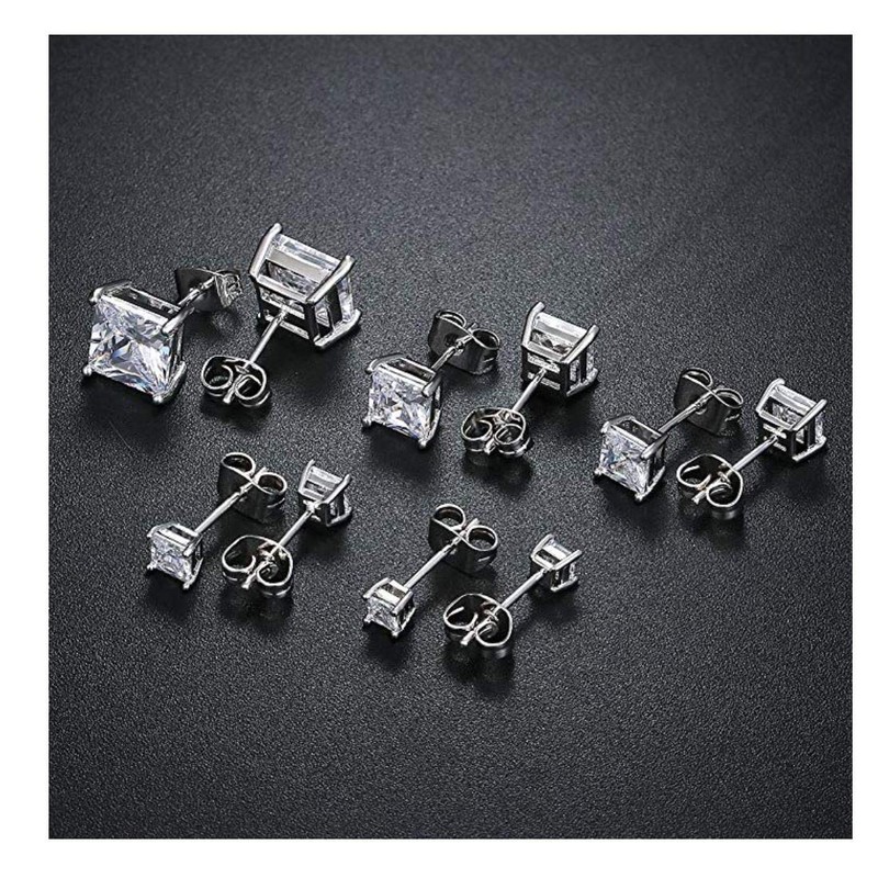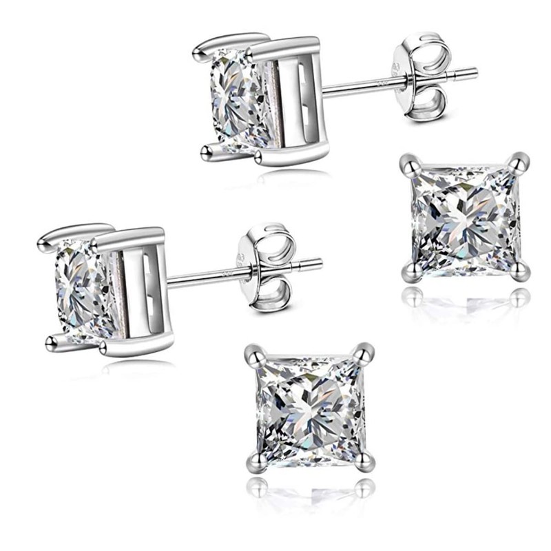 - (2 pairs) ✦ Simple, cute, sparkle earrings for every day wearing ✦ Genuine 925 sterling silver - hypoallergenic and nickel-free ✦ Created diamond of top grade sparkle cubic zirconia ✦ Tarnish resistant rhodium coating finish to protect the silver jewelry from tarnish, oxidation and fading ✦ A timeless fine jewelry gift