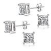 2 Pairs Adabele Real 925 Sterling Silver Hypoallergenic 2 Carat Cubic Zirconia CZ Diamond Gemstone Square Princess Stud Earrings 8mm Earrings Fine Jewelry SSE84-8