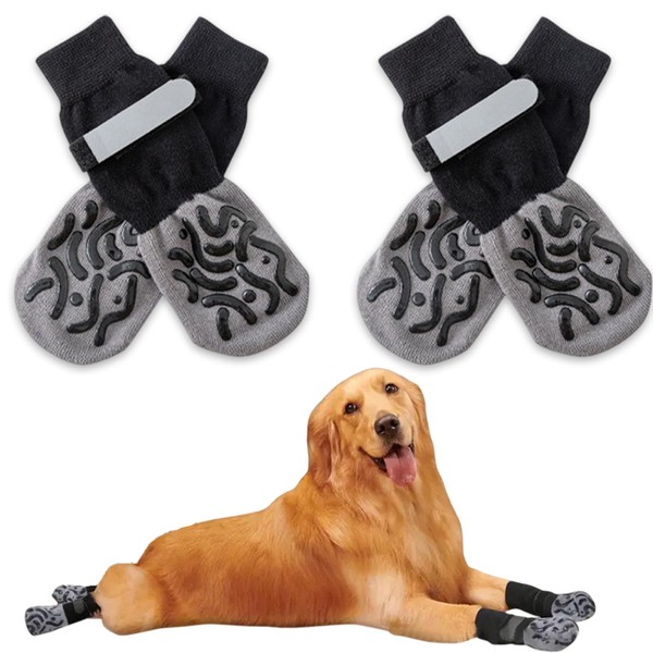 2 Pairs Anti Slip Dog Socks, Hardwood Floors, Walking Boots for Injured Paws Hot Weather/Winter, Prevents Licking, Traction Control No Twist Grip Booties for Small Medium Large Senior Dogs