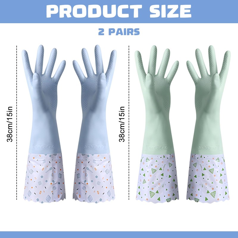 2 Pairs Flock Lining Long Cuff Cleaning Gloves