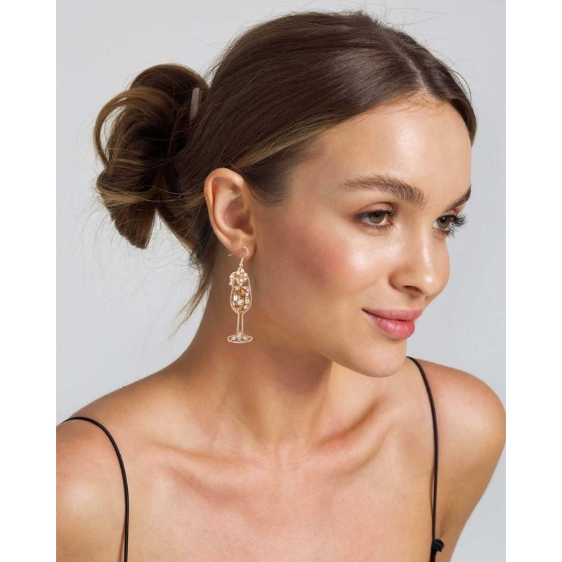- Champagne Glass Earrings:These rhinestone bead champagne bottle earrings in vibrant colors are so festive and will easily elevate any look!! Whether you're looking for the perfect piece for an elegant party, or you're adding tacky pizazz to your ugly Christmas sweater, these statement earrings will enhance your whole dress up.