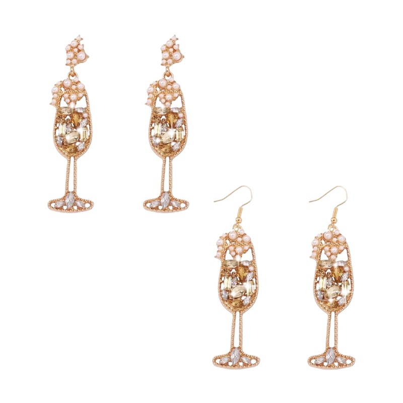 - Champagne Earrings:You will get 2 pairs of champagne earrings. Made of high quality alloy wine glass adorned with crystal rhinestone and pearl, nickle free and lead free, hypoallergenic and suitable for sensitive ears. lightweight and no much burden to your ear, comfortable to wear, suitable for everyday wear.