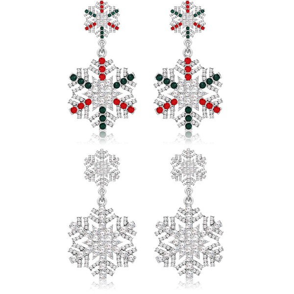 - ❉ Latest Christmas Earrings ❉ 1 pair with silver rhinestones and 1 pair with multicolor rhinestones for each pack, either simple or delicate, 3 styles of snowflake design for different outfits or moods. Unique, cute and pure, the winter snowflake earrings for women are perfect chic statement pieces for the coming holiday season.