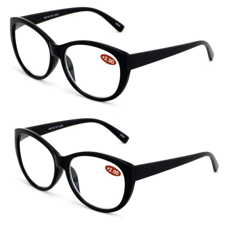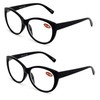 2 Pairs Deluxe Women Reading glasses - Magnified Readers Cateye Vintage Jackie Oval (2 Black, 1.25)