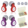 2 Pairs Ear Plugs, Reusable 35DB Noise Cancelling Ear Plugs for Sleeping, Soft Waterproof Portable Silicone Earplugs Hearing Protection for Concerts, Work, Study, 6 Ear Tips in S, M, L (Purple&Red)