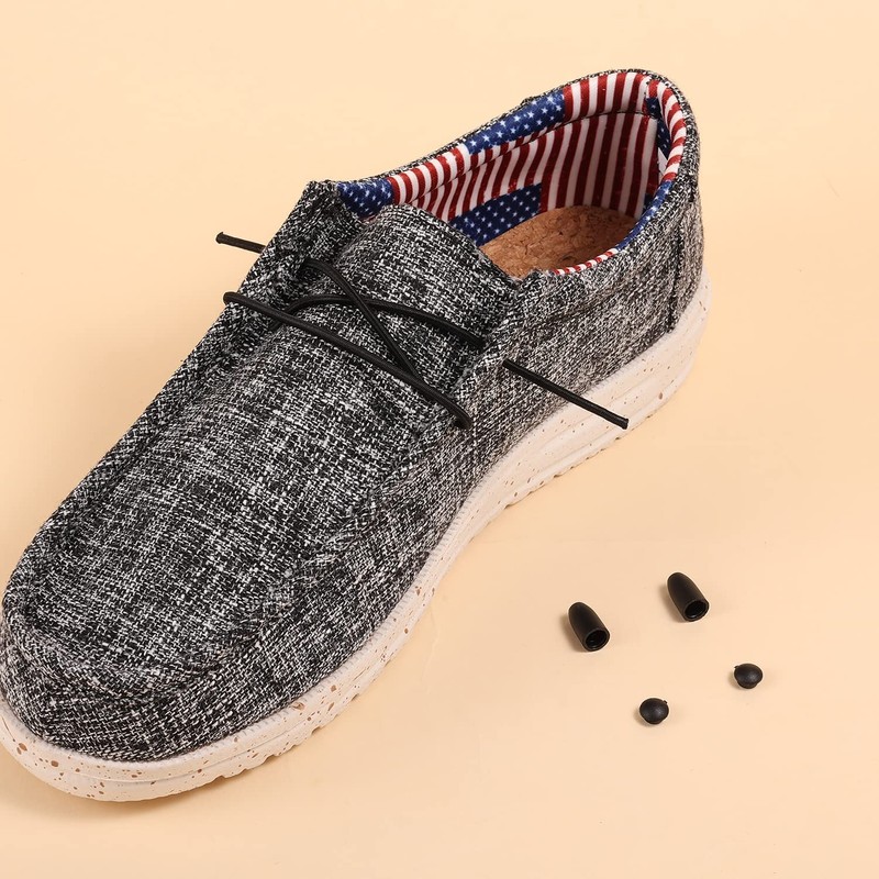 2 Pairs Elastic Shoelaces, Black String Shoelaces with 4 Lace Locks & 4 Covers Replacement Shoe Laces Install Shoelace Tool for Hey Dude Shoe Laces