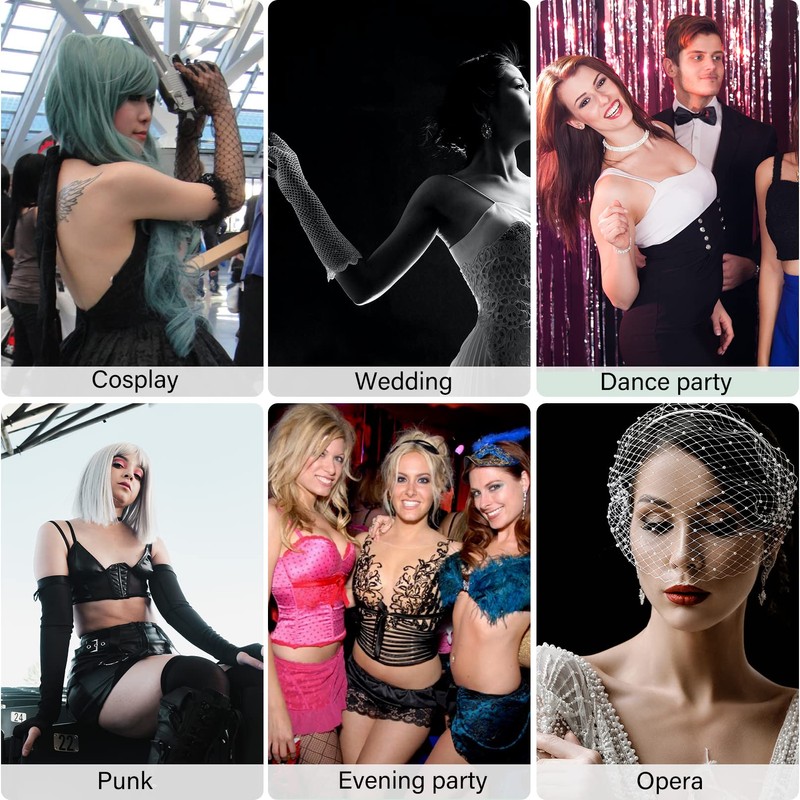 These stretchy mesh women's gloves can be used for a variety of occasions such as Halloween parties, Christmas parties, theme parties, weddings, parties, bridal ceremonies, opera performances, costume parties, cosplay parties and more.