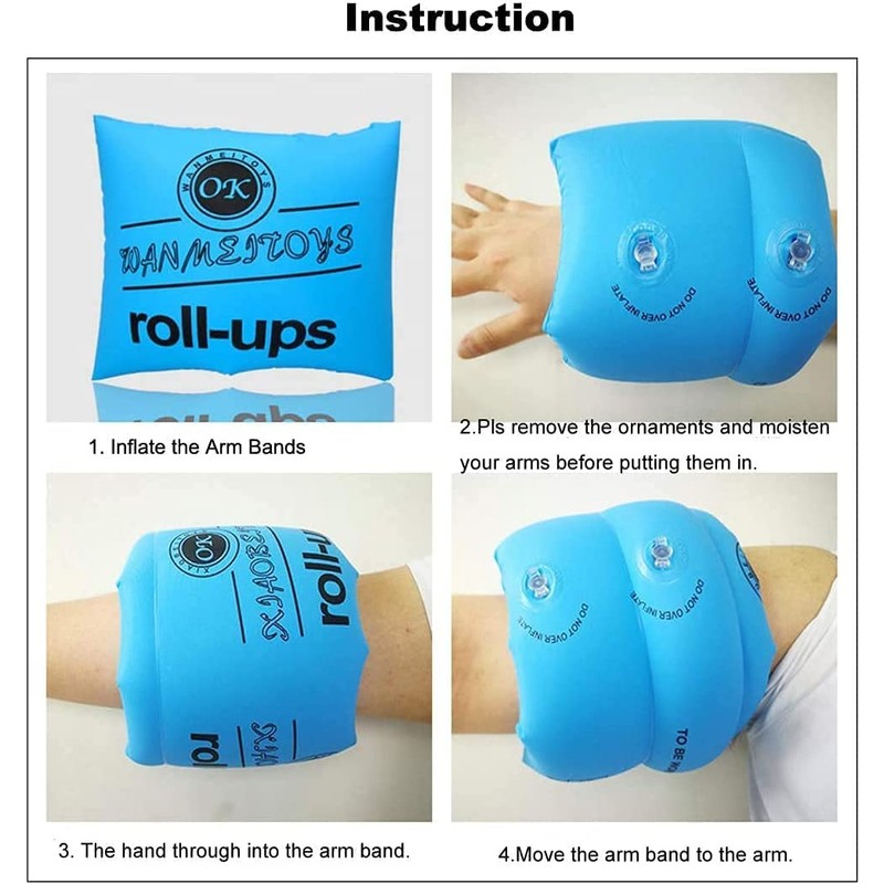 2 Pairs Inflatable Swimming Armbands, Kids Swim Arm Bands Float Roll up Sleev...