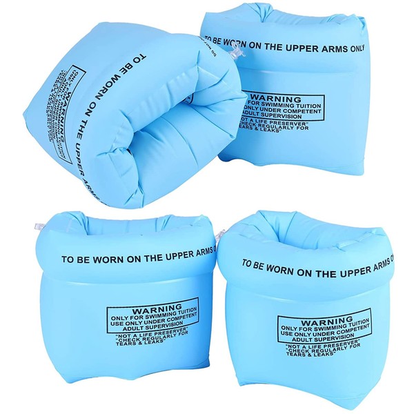 2 Pairs Inflatable Swimming Armbands, Kids Swim Arm Bands Float Roll up Sleeves Pool Learning Swim Training Aids Float Swimming Ring for Boys Girls and Adults (Blue)