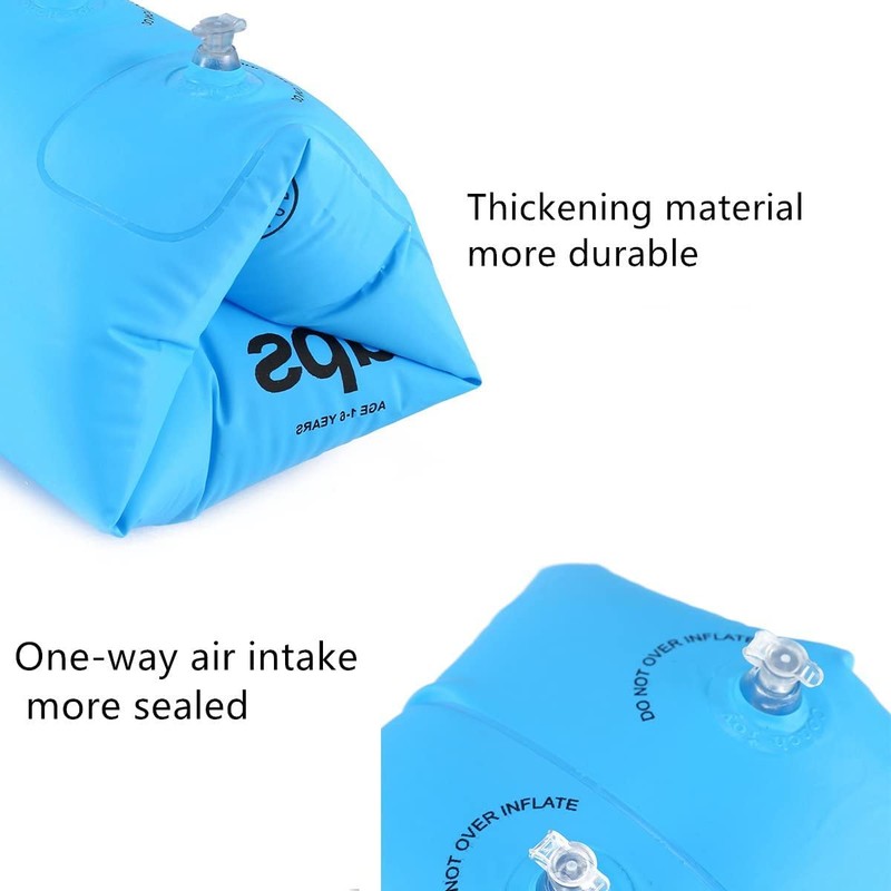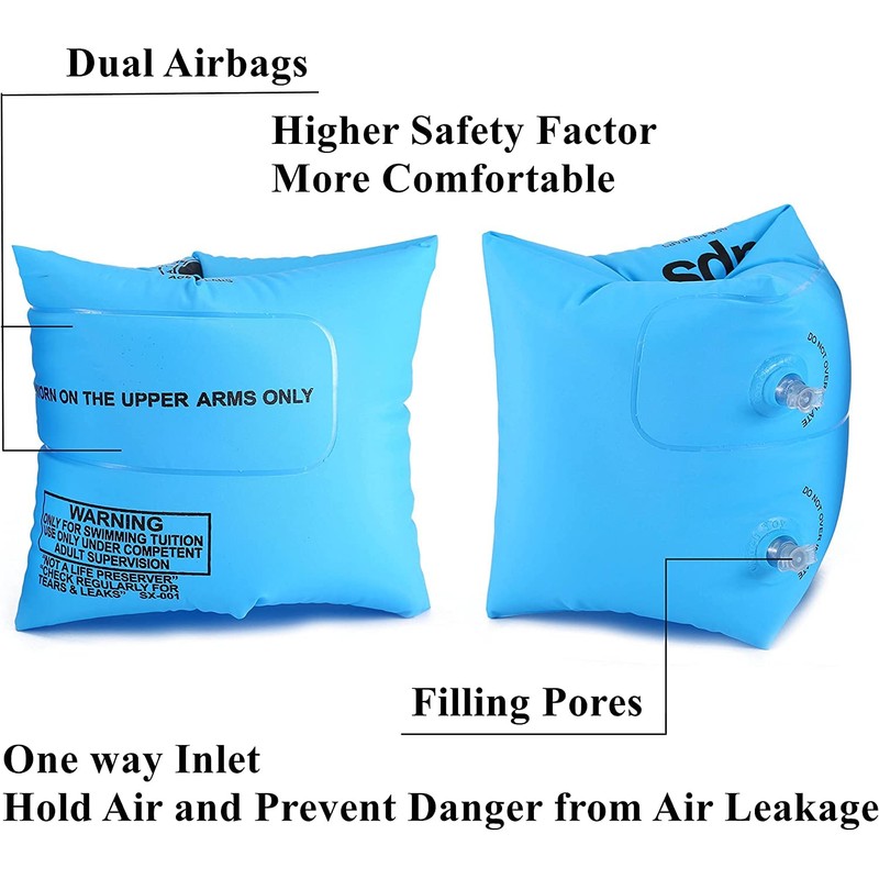 • Dual Airbag Protection - The swimming arm buoy has two airbags. This design provides double protection for swimming students. Construction with main and additional air chambers provides two layers of buoyancy to keep you above the water.