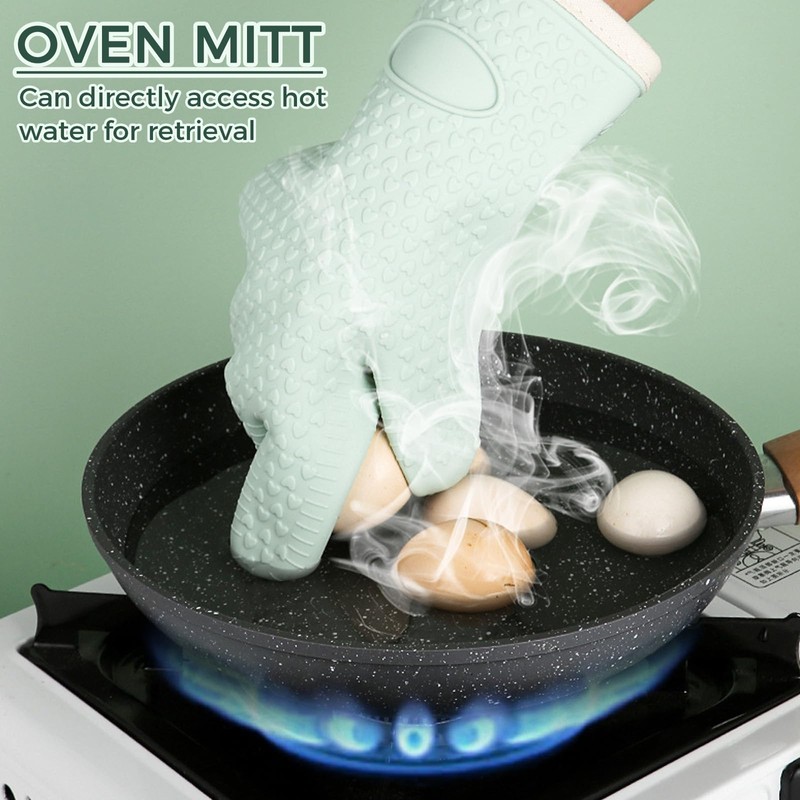 - 【Multi-Purpose & Non-Slip Grip】 *This silicone baking set includes 2 pairs oven mitts. The raised heart-patterned texture prevents slips, ideal for oven trays, BBQ grills, or canned foods. Use as heat-resistant mats for countertops or trivets!