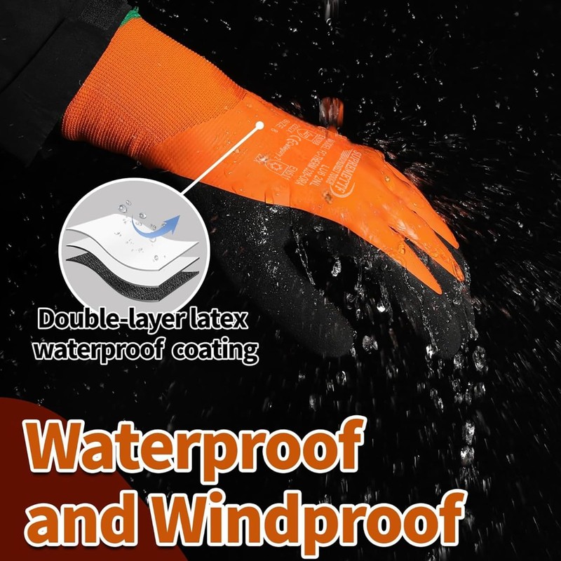 Stay warm and protected during cold weather work with these professional-grade thermal gloves. The innovative design features a 10-gauge outer shell paired with a cosy 10-gauge fleece lining for superior insulation. The sandy latex coating on the palms ensures excellent grip control in both wet and dry conditions, making these gloves perfect for outdoor tasks like car washing, gardening, or fishing. The thermal insulation technology effectively maintains hand warmth while allowing necessary dexterity for detailed work. These waterproof work gloves come in a vibrant orange colour with black coating, offering both functionality and visibility. The comfortable fit and durable construction make them ideal for extended wear during various winter activities. Whether you're handling tools, working in cold storage, or tackling outdoor maintenance, these multipurpose gloves provide the protection and comfort you need for challenging conditions.
