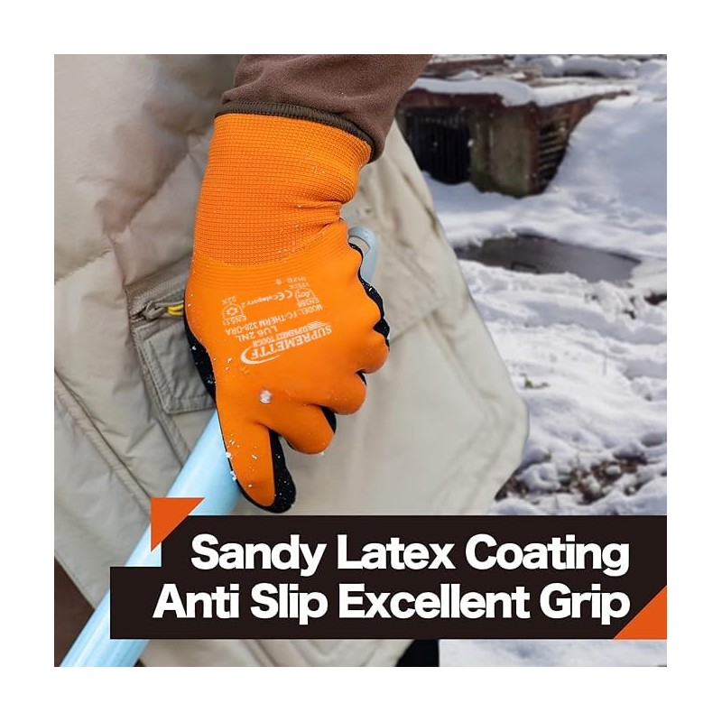 2 Pairs SupremeTTF Winter Work Gloves, Thermal Insulated, Sandy Latex Coated ...