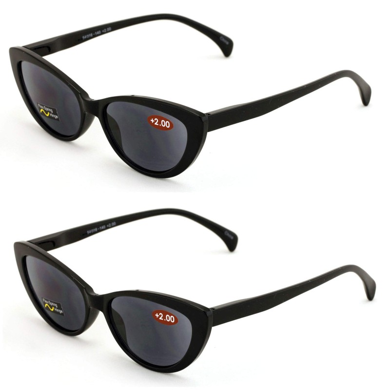 - 2 Pairs of cateye sunglasses readers, the entire lens is fully magnified. NOT BIFOCAL. 100% UVA and UVB protection.