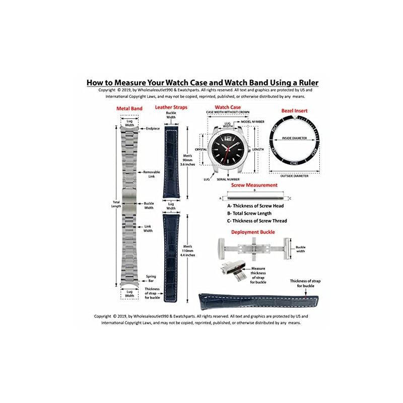 If there is a problem with item you receive, please contact us and wait for our email. We should be able to resolve the problem.All Customers Please Read The Following Before Purchasing:Be sure to check our detailed measurement guide below or in the photos/images section of the listing to assist you with purchasing the correct parts for the watch. The guide will show you how to measure the lug width opening of the watch using a ruler, how to check the model number, and assist you with other questions you may have regarding measurement. Watches may share a visual resemblance, yet variations in case size or year model can distinguish them. This will help to avoid any returns or exchanges. We are also an email away to assist with any questions you may have. Thank you for the business!100% Satisfaction Guarantee!We sell only the best quality replacement watch parts and accessories for the watch. the satisfaction is guaranteed or the money back! We have been in the watch parts industry for over 50 years and have been selling online for over 20 years. Buy with confidence from a reputable seller in the USA that you can trust! Visit our online store for a huge selection of other watch parts.