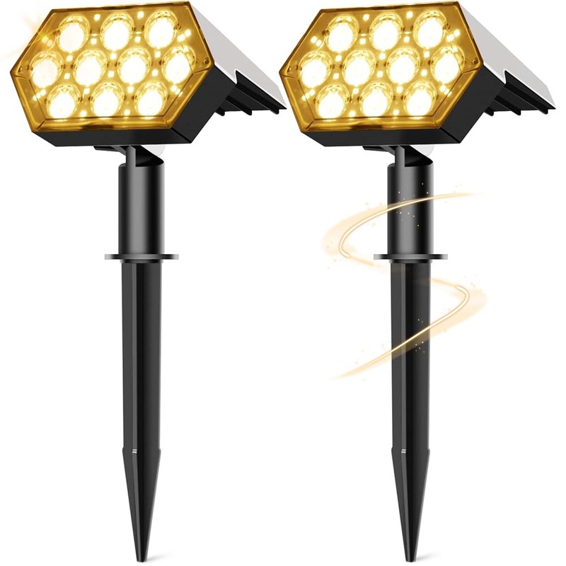 - 💡 【Alta Gama y Duradero】Las focos solares para paisaje de jardín impermeables de alta gama están hechas de material plástico ABS de alta calidad y duradero, con carcasa de aluminio sólido y anillos impermeables incorporados, índice de impermeabilidad ip67. Son duraderas y no te preocupes por el mal tiempo.