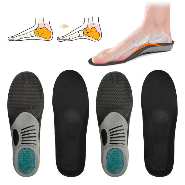 - ALIVIO DEL DOLOR: Las plantillas ortopédicas brindan un soporte adecuado para aquellos que necesitan soporte para el arco, como arcos altos, arcos bajos y pies planos. Es eficaz para aliviar y prevenir lesiones comunes como la fascitis plantar, la tendinitis de Aquiles, la perforación del talón, la pronación excesiva y el dolor de rodilla. Mejora la postura incorrecta de pies y piernas para mayor comodidad.