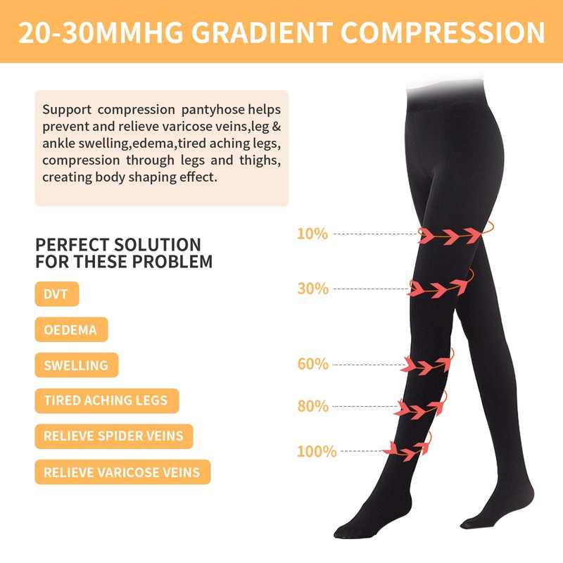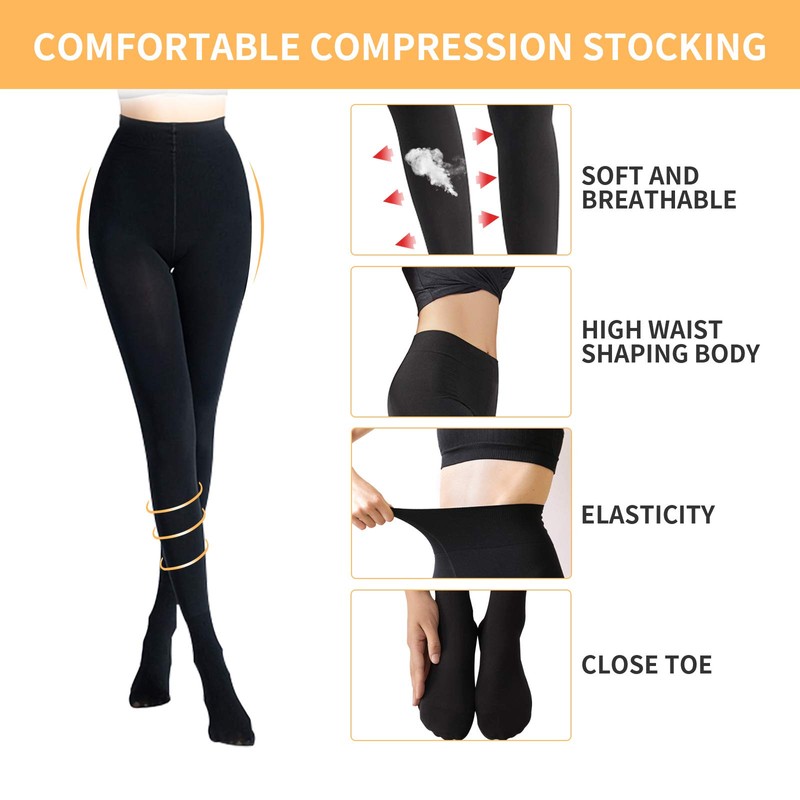 - Talón y puntera reforzados: medias de compresión elásticas opacas, moda y comodidad, proporcionan la máxima resistencia, durabilidad y poder de ocultación. El diseño de puntera cerrada alivia la presión y el dolor del pie, promueve la salud de los pies. El diseño elástico de dos vías proporciona comodidad adicional y hace que sean más fáciles de poner