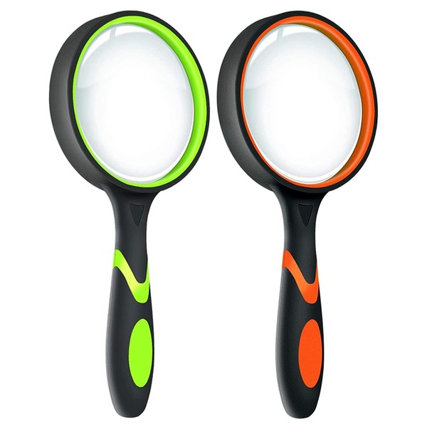 2 Pcs 10X Handheld Magnifying Glass for Reading, Classroom Science, Nature Exploration (Orange, Green)