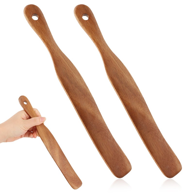 2 Pcs 11 Inch Wooden Spatula for Cooking, Durable Sourdough Spatula with Hanging Holes, Multi-Purpose Mixing Spoon, Stirring Stick, and Jar Scraper, Kitchen Tools(COLOR:Brown)