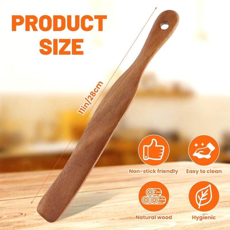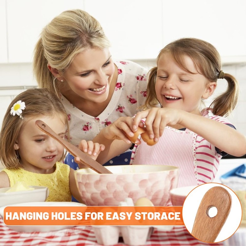 【Easy to Storage】In addition to the long handle for ease of use, this wooden spatula has hanging holes for easy storage and drying.