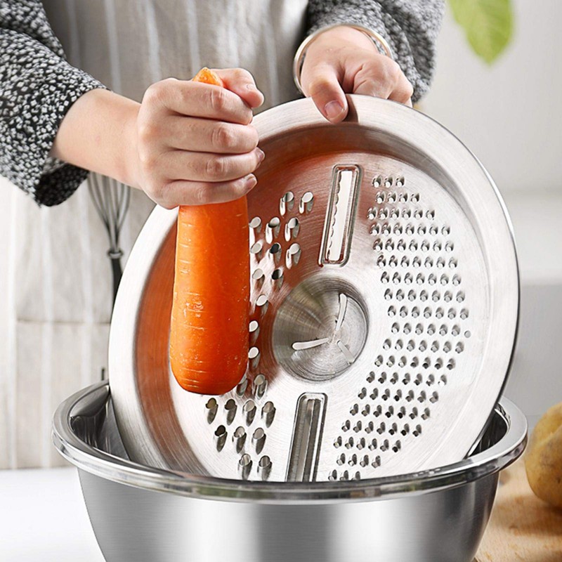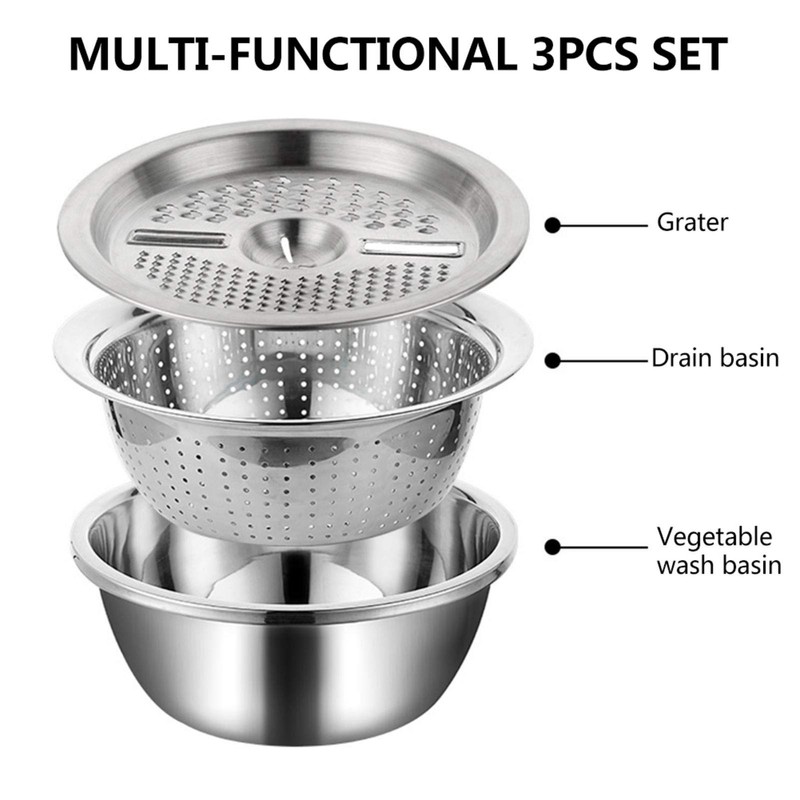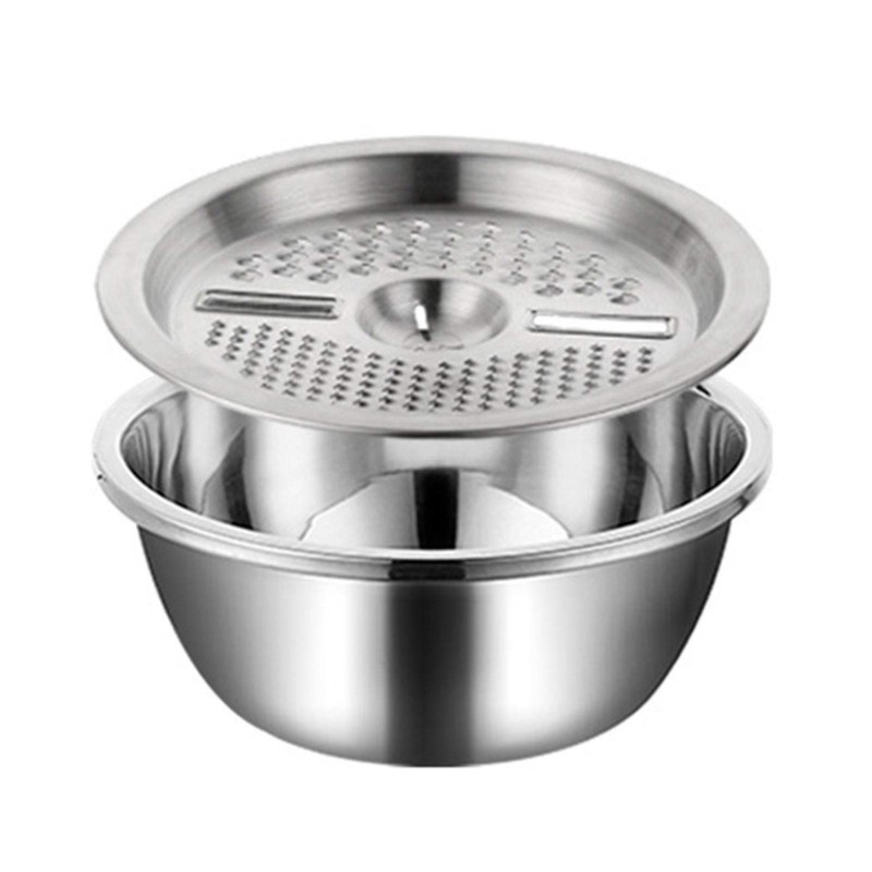 - The stainless steel grater set is multi-functional, used for chopping, slicing, drain, vegetable and fruit cleaning.