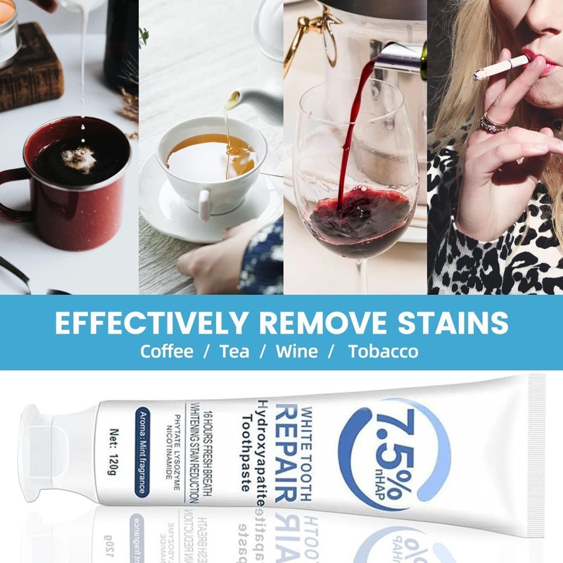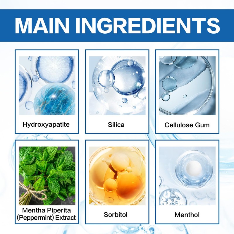 - Hydroxyapatite-Enriched Formula: Powered by hydroxyapatite, a naturally occurring mineral that helps effectively restore and strengthen tooth enamel, protecting your teeth from daily wear and tear.