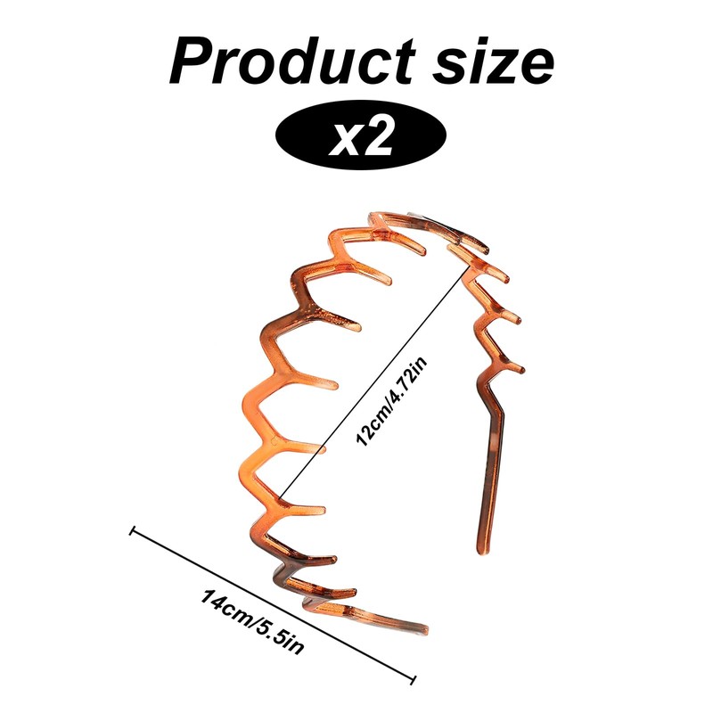 2 Pcs 90s Zig Zag Headband, Plastic Hairbands with Sharks Tooth Comb, Non-Slip Wavy Elastic Headbands for Women Men Girls, Unisex Hair Accessories (Brown)