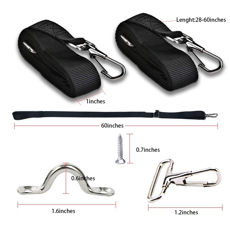 • Package includes:2 pcs marine premium top straps and 2 pcs stainless steel eye straps and 2 pcs stainless steel hook clips and 4 pcs screw to use for people who want double hook clip on both ends and not need to other place to buy the hardware.