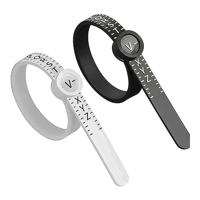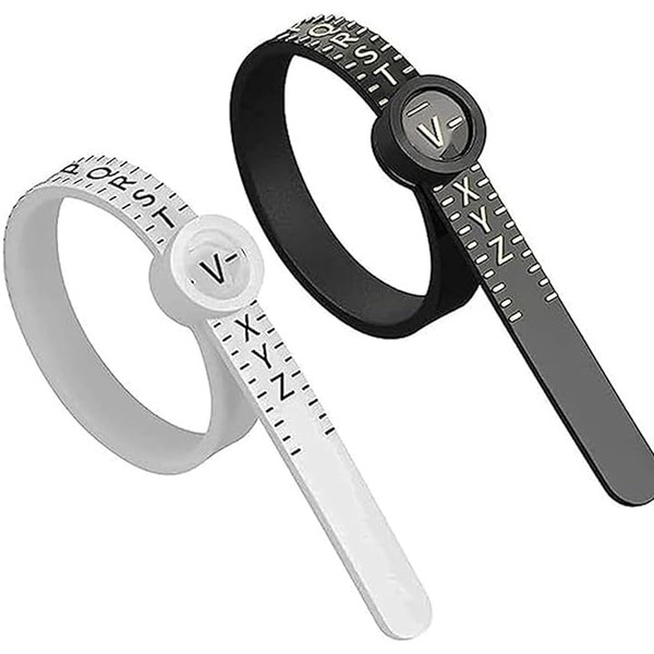 2 Pcs Adjustable Ring Sizer UK – Ring Measurement Tool with Magnifying Glass – A-Z Sizing for Men & Women – Includes Ring Size Guide & Chart (Black & White)