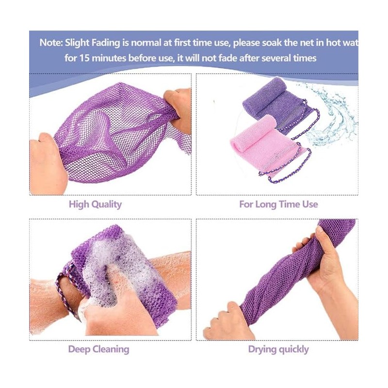 Designed to gently remove dead skin and impurities, these nets reveal soft, glowing skin with each use, leaving you feeling refreshed and revitalized.