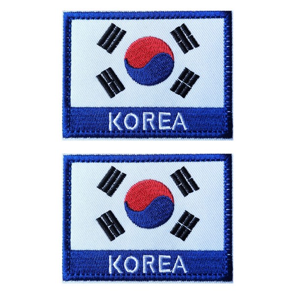 2 PCS AliPlus South Korea Patches South Korea Flag Patches Embroidered Tactical Patch Hook and Loop(Blue White)