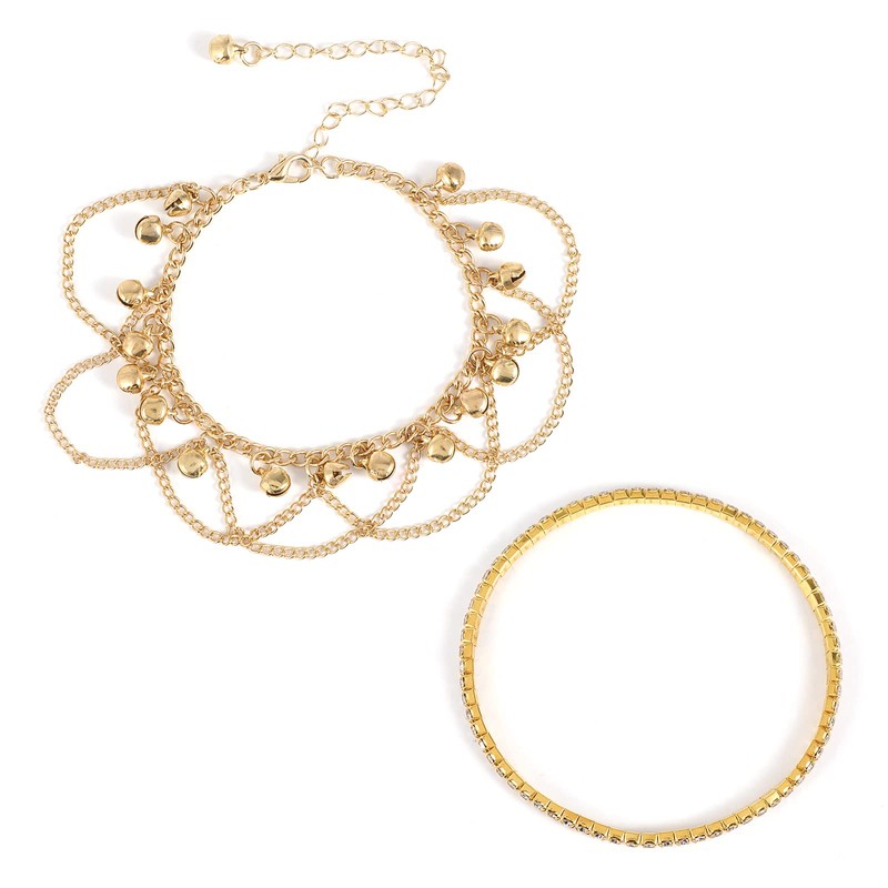 - Women's Double Fashion Anklets - Pwsap combination of bells and faux diamond double anklets is stylish, personal and eye-catching, bells and draped tassels can better decorate your ankles and make them more elegant, double anklets make the ankles appear more slender, add your charm and personal style.