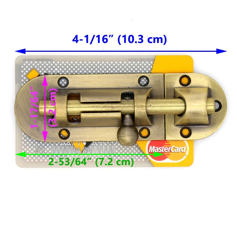 2 PCs Antique Brass Barrel Bolt Latch Slide Door Lock with Screws, Length 4-in (10.3 cm) and Width 1.3-in (3.2 cm)