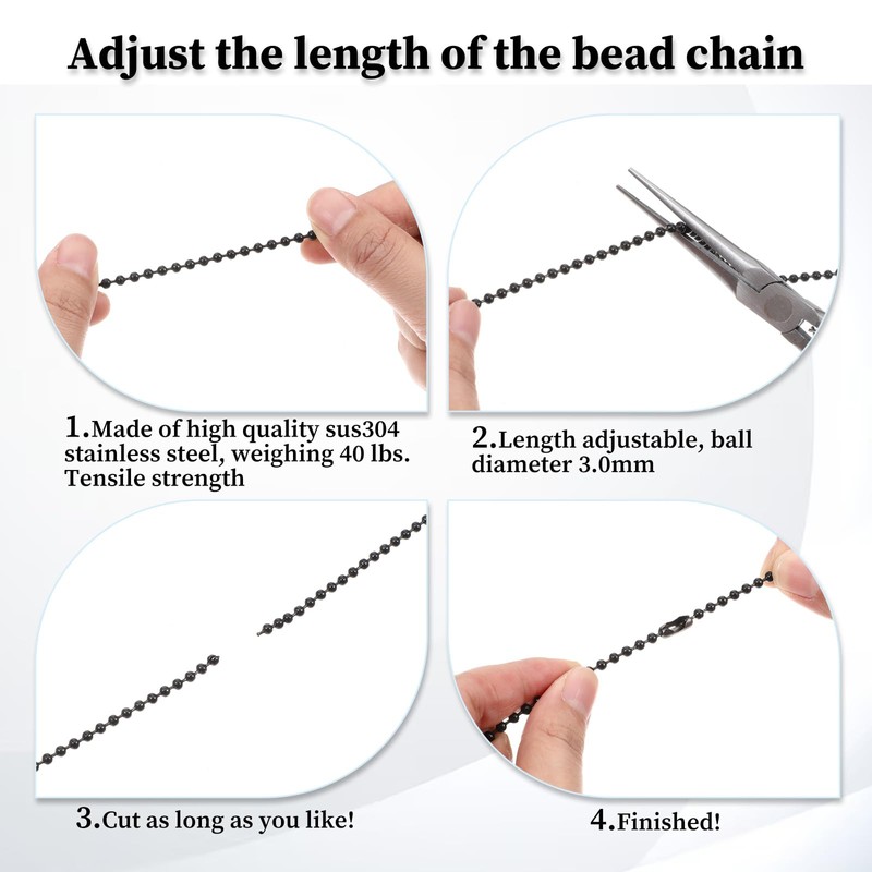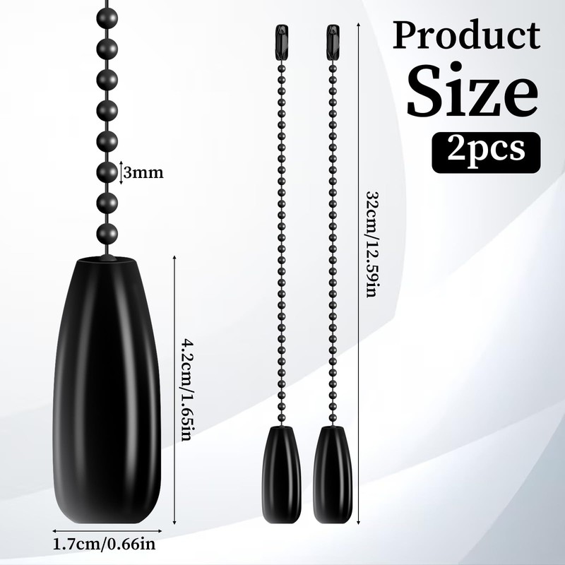 • What You Get: The set contains 2 black light chain pull extenders with a length of 16.5 inches/42 cm. The chains can be used separately or combined together as ceiling fans, light extenders